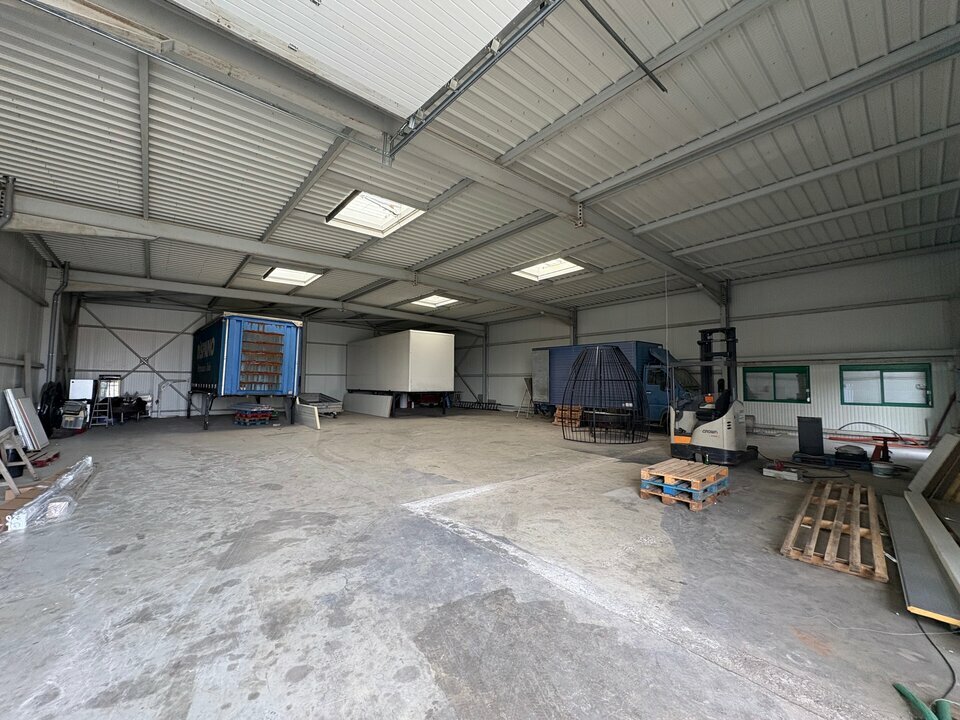 Ensemble d'activités récent de 500 m², structure métallique, bardage double peau, toiture isolée, non chauffé, éclairé avec porte sectionnelle électrique, un bureau avec d'accès directe et sanitaires.